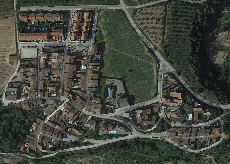 Passa el ratolí per sobre les teulades per saber els noms de les cases, i si hi cliques al damunt la podràs veure.